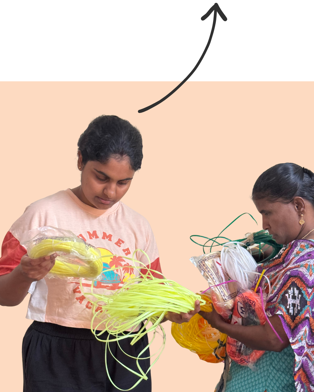 These women were blind. But the first thing I noticed wasn’t their disability, it was their confidence. Their hands moved with grace and certainty as they knotted recycled plastic into beautiful patterns. They worked through touch, rhythm, and pure instinct. No sight. And I knew I wanted to build something that allowed their stories to shine.