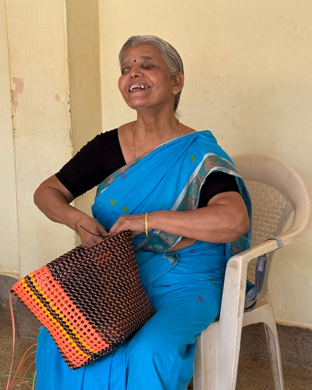 Each DSRV bag is meticulously hand-knitted by our gifted women artisans, transforming recycled materials into elegant, timeless pieces.